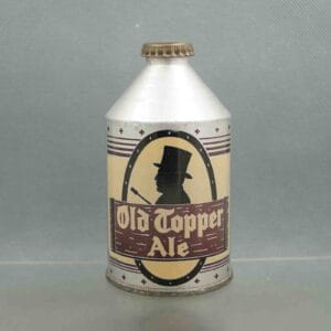This unique looking beer can is a cone top due to the spout on the top. Pictured to the left are 3 types – high profile, low profile, and J-spout, respectively. This style can has a bottle cap. Cone top beer can production was from 1935 until 1960. They are highly collectible because of their age and unique shape. In mint condition the value ranges from $75 – $1000+. A few phony cone tops exist but they have no value such as Milwaukee Brand and General Pulaski.